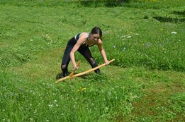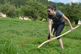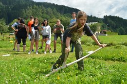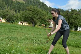 Bei den Mädchen, die eine Fläche von 3x5m mähen, holte sich Hannah Bärnthaler (OG Kumpitz) den Sieg!