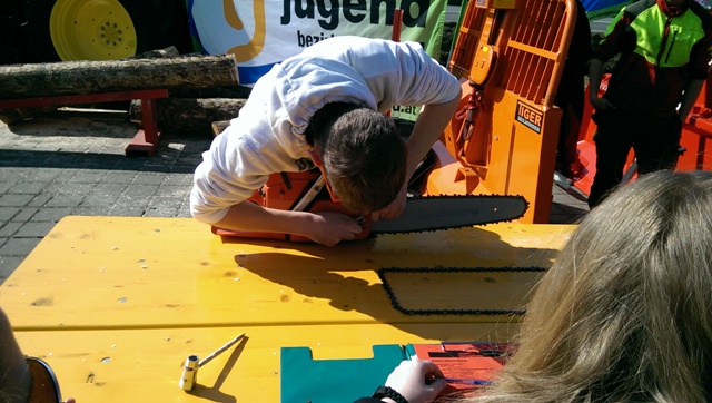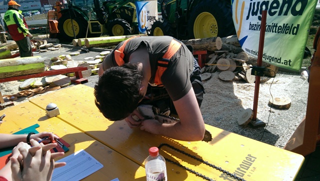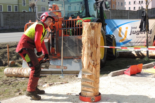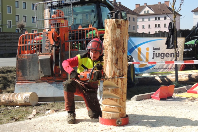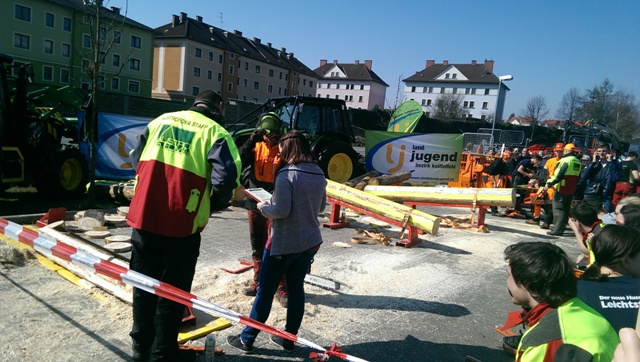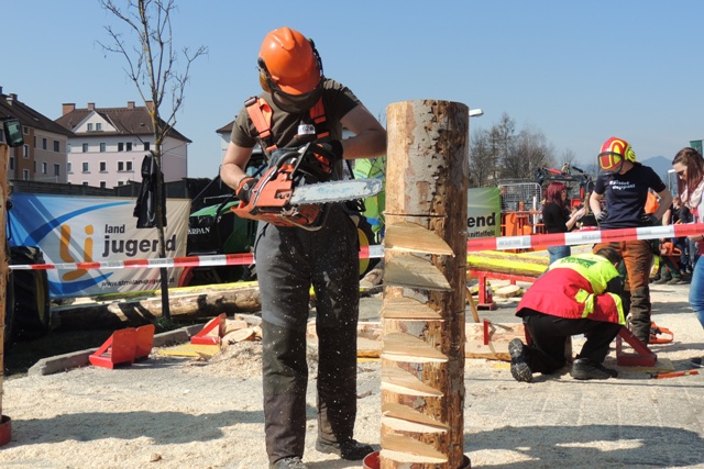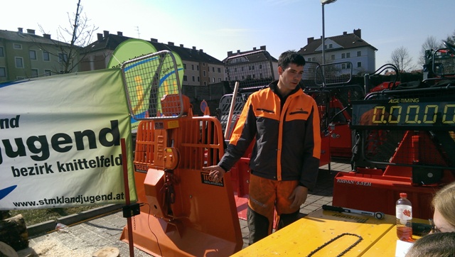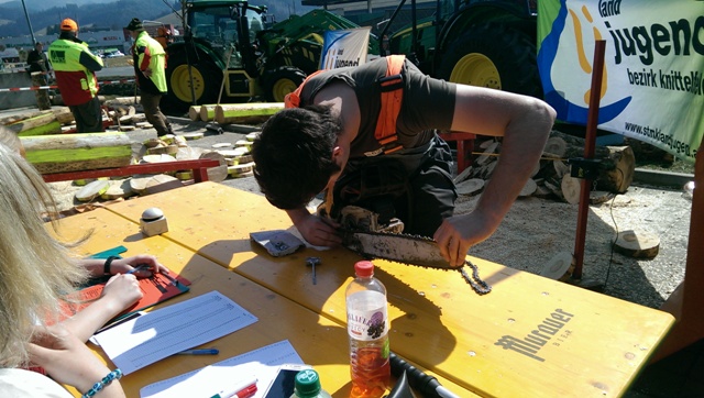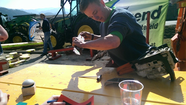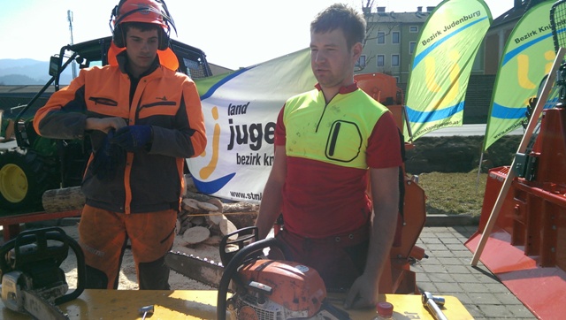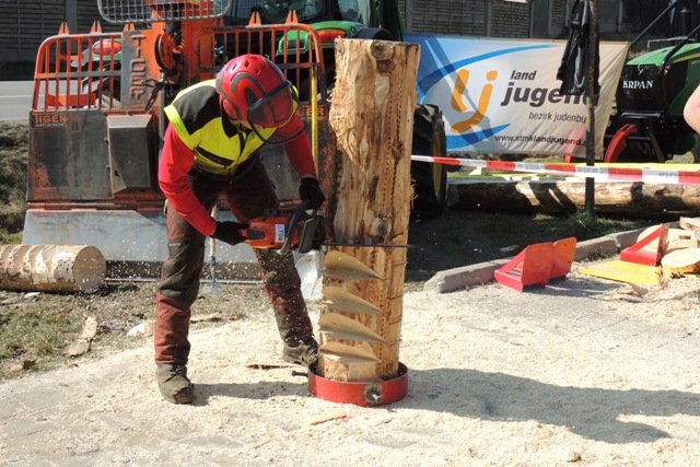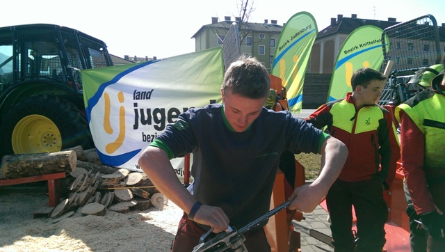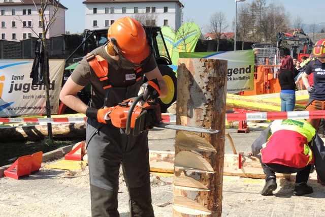 Beim Landforstkirtag in Knittelfeld konnte der Bewerb der Superlative mit 30 TeilnehmerInnen aus anderen Bezirken durchgeführt werden. Besonders erfreulich war auch die Zahl der weiblichen Teilnehmerinnen. 14 Mädchen zeigten beim doch sehr männlich dominierten Bewerb tolle Leistungen. Genauigkeit, Präzision und Schnelligkeit musste bei den Stationen Präzisionsschnitt, Kombinationsschnitt, Fallkerb- und Fällschnitt, sowie beim Kettenwechseln bewiesen werden. Durch die Unterstützung der Bezirkskammer für Land- und Forstwirtschaft und der Landforst Knittelfeld konnte den TeilnehmerInnen ein fairer und fachlich hochwertiger Wettbewerb geboten werden. Die Klasse der Landjugend Knittelfeld konnte Karl Freytag (Ortsgruppe Glein-Rachau) für sich entscheiden. Er bewies vor seinen Kollegen, Martin Steinkellner (Ortsgruppe Kleinlobming) und Bernhard Gruber (Ortsgruppe Kleinlobming), das meiste Geschick im Umgang mit der Motorsäge. Die Landjugendklasse Judenburg entschied Christoph Kubli (Ortsgruppe Unzmarkt) vor Michael Grasser (Ortsgruppe Rattenberg) und seinem Bruder Martin Kubli (Ortsgruppe Unzmarkt) für sich. Christoph Kubli hatte besonderen Grund zu feiern, erzielte er doch zusätzlich auch noch die Tagesbestleistung. In der Gästeklasse konnten sich die Besucher aus Leoben, Kapfenberg und Murau auf das Treppchen stellen. Michael Hafelner siegte hier vor Johannes Weißenbichler und Rafael Rieberer. Den Siegern des jährlich stattfindenden Bewerbs konnten wertvolle Preise der Landforst Knittelfeld und Murauer Bier überreicht werden.