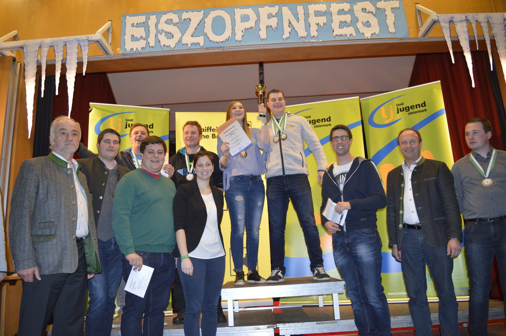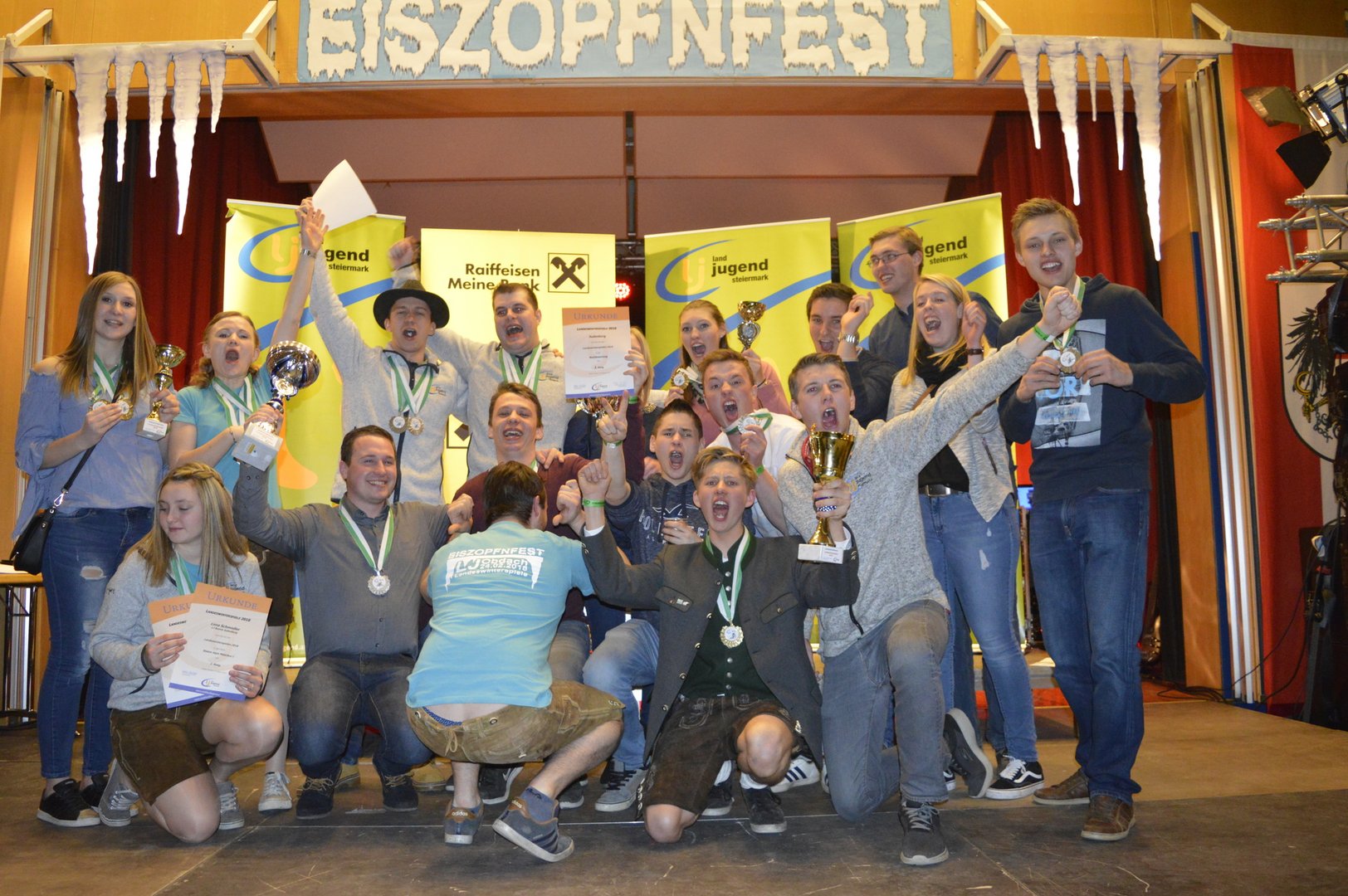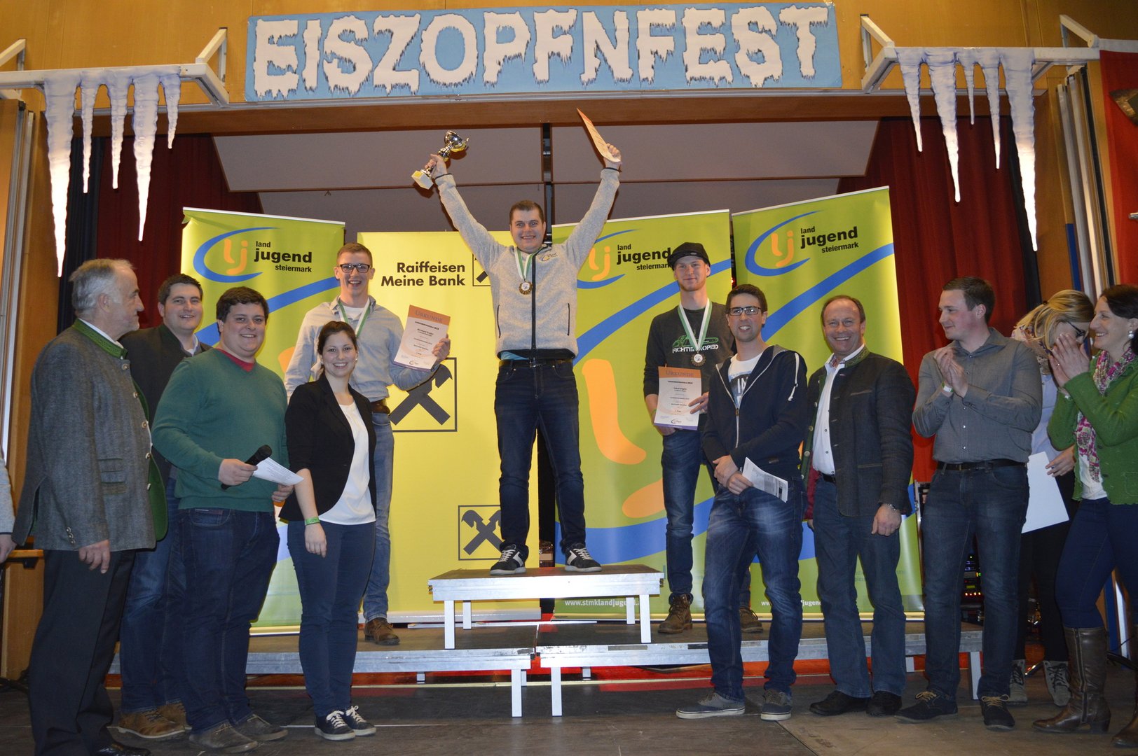 Am Abend fand die Siegerehrung und anschließend das Eiszopfnfest im VAZ Obdach statt, wo die zahlreichen Siege noch bis in die Morgenstunden gefeiert wurden. Im Saal sorgten „Die jungen Südsteirer“ für fantastische Stimmung, in der Disco legte „Sound Society“ auf.