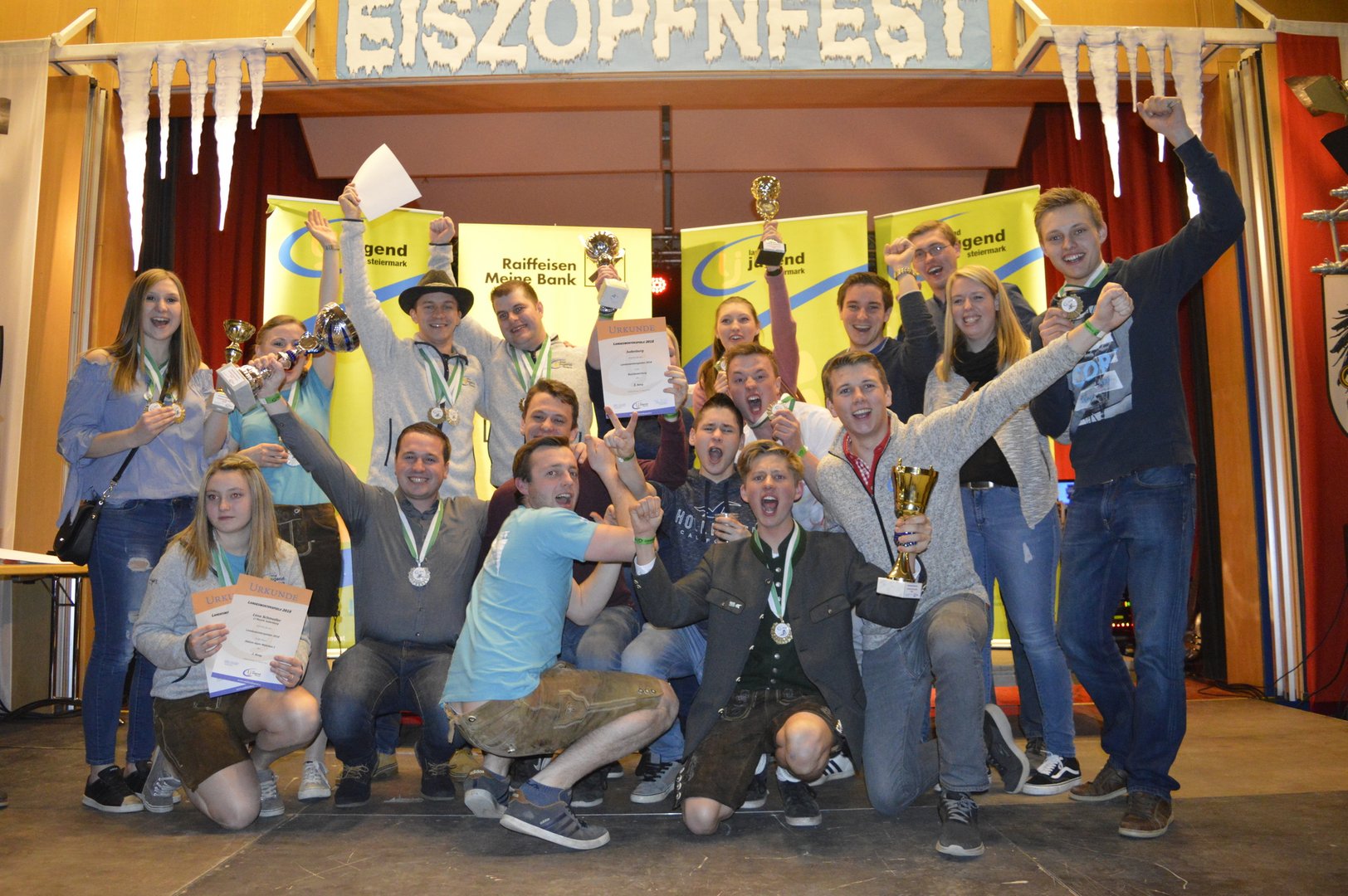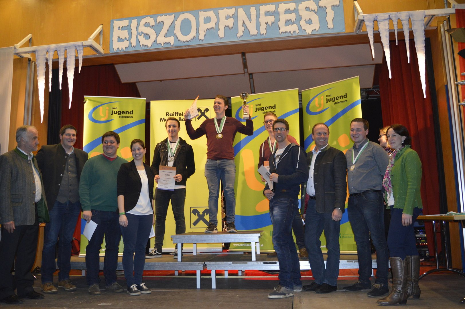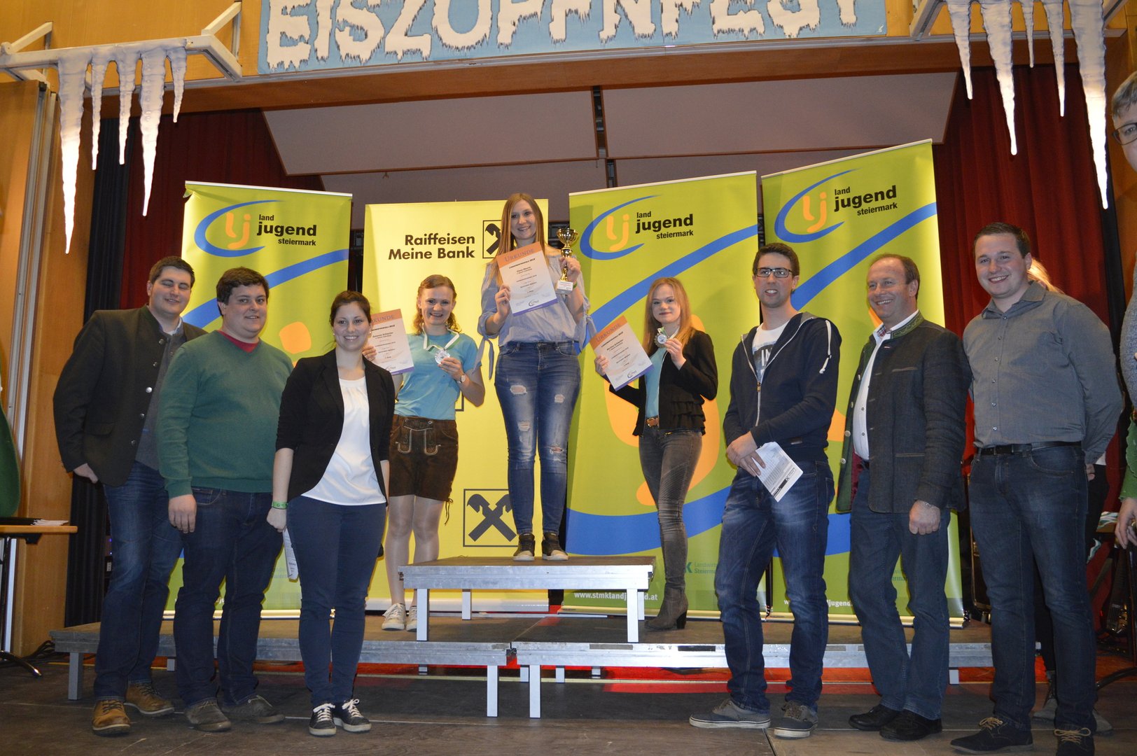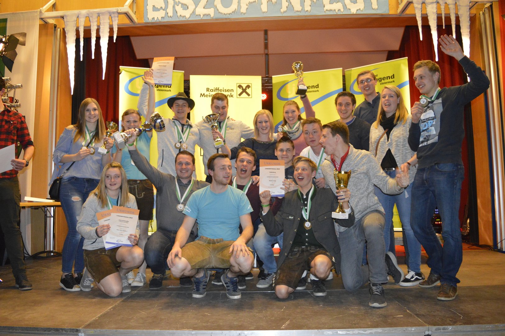 Am Abend fand die Siegerehrung und anschließend das Eiszopfnfest im VAZ Obdach statt, wo die zahlreichen Siege noch bis in die Morgenstunden gefeiert wurden. Im Saal sorgten „Die jungen Südsteirer“ für fantastische Stimmung, in der Disco legte „Sound Society“ auf.