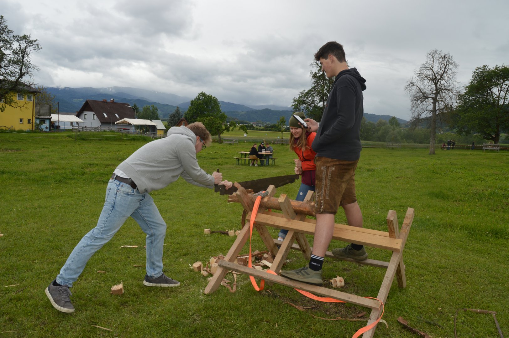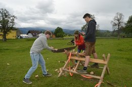 Viele Teams traten bei verschiedenen Geschicklichkeitsstationen, wie etwa Axt werfen und sägen, gegeneinander an.